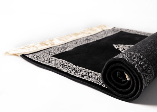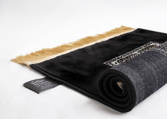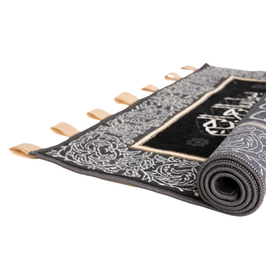 Kaaba Inspired Prayer Rug in Black and Silver